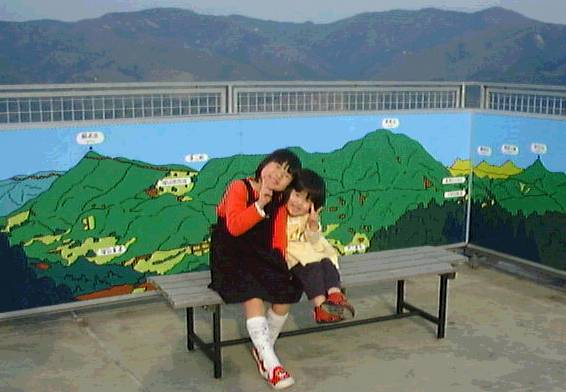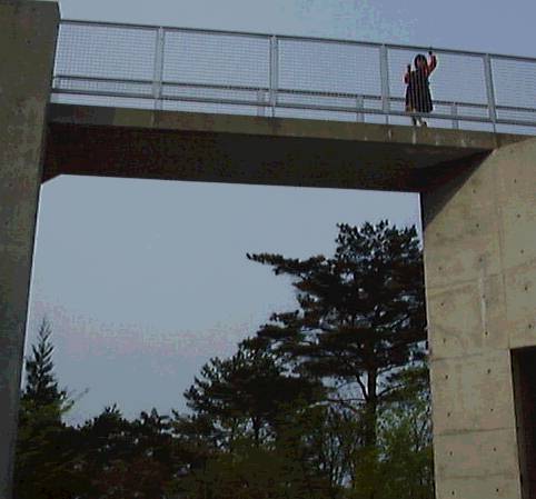 「谷間そば」の前で。 後ろにみえる家は、親戚だったりするのだ(^_^)。 |